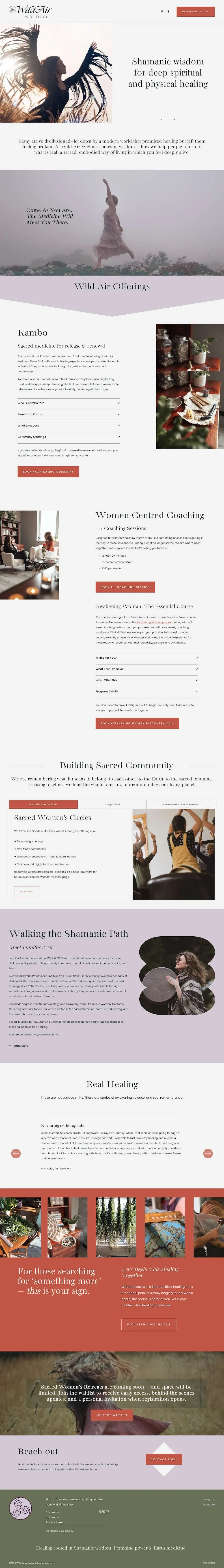 Led by Wellness Coach Jennifer Ayer, Wild Air Wellness is a small but powerful sanctuary for those disillusioned by modern life and ready to return to the wild intelligence of the body, spirit, and Earth. Jennifer needed a website and branding to help communicate her vision as to women seeking community, and interested in Earth-based wellness approaches.